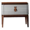 This bedside table combines elegance and practicality in a refined modern design. Crafted from high-quality natural wood with a sturdy stainless steel frame, it ensures durability and lasting appeal. The khaki finish accented with touches of gold adds warmth and sophistication, perfectly complementing any contemporary bedroom décor. With its ideal dimensions, it provides both functionality and style, making it a beautiful addition to any interior.