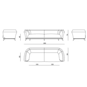 - Dimensions: Height 74 cm × Width 280 cm × Depth 94 cm