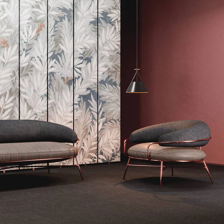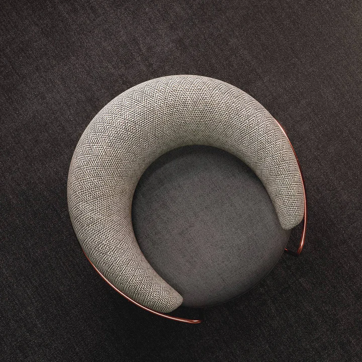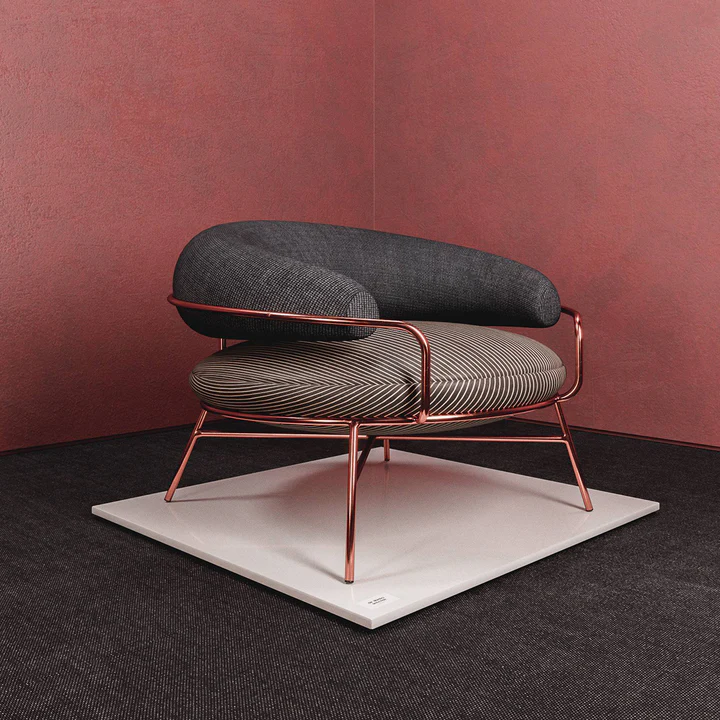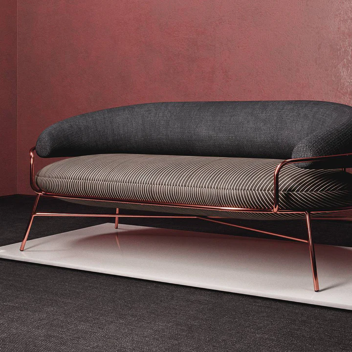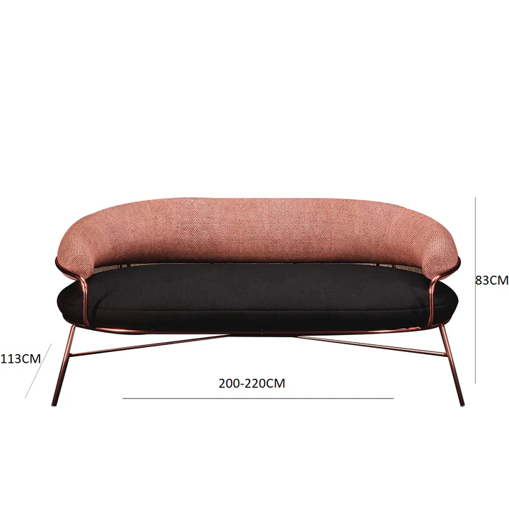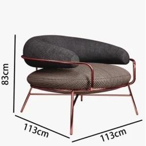This stylish circular metal chair beautifully blends functionality and elegance, making it a standout piece in any modern interior. Available in sophisticated color combinations — gray with white and black or terracotta with black — it adds a contemporary artistic touch to your décor. Crafted from sturdy metal and upholstered in high-quality fabric, it ensures both durability and exceptional comfort. The design comes in various sizes, from a single armchair (113 cm width, 113 cm depth, 83 cm height) to a spacious sofa (widths ranging from 200 cm to 300 cm, depth 113 cm, height 83 cm), making it a versatile choice for different seating needs.