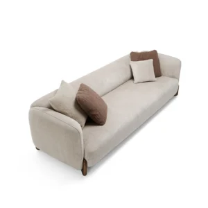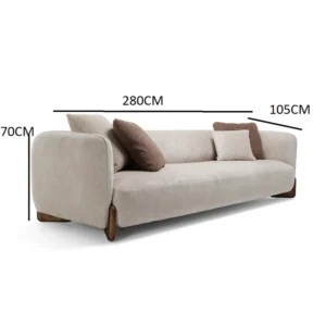 A modern and comfortable sofa that adds a touch of elegance to any living room. Featuring a simple design and two stylish colors: dark brown and dark white, making it perfect for complementing various decor styles. With practical dimensions of 280 cm in width, 105 cm in depth, and 70 cm in height, this sofa offers ample space and optimal comfort. Made from natural wood and high-quality linen fabric to ensure durability and beauty.