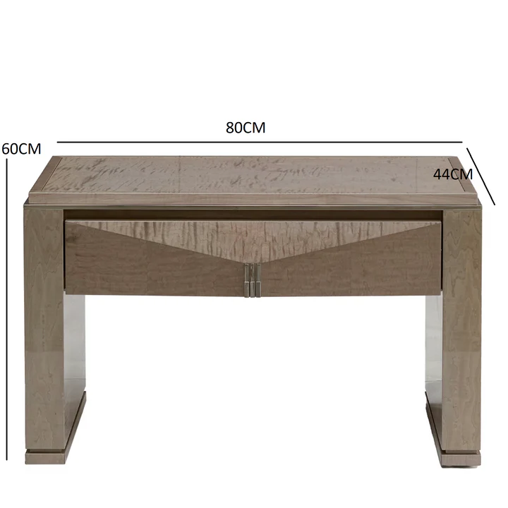 Add a touch of elegance and functionality to your space with this distinctive chest of drawers. It features ideal dimensions—80 cm in width, 44 cm in depth, and 60 cm in height—making it perfect for organizing small items. Crafted from high-quality natural wood with stainless steel accents, the chest combines durability with beauty. Its warm brown color creates a cozy atmosphere and enhances any interior decor.