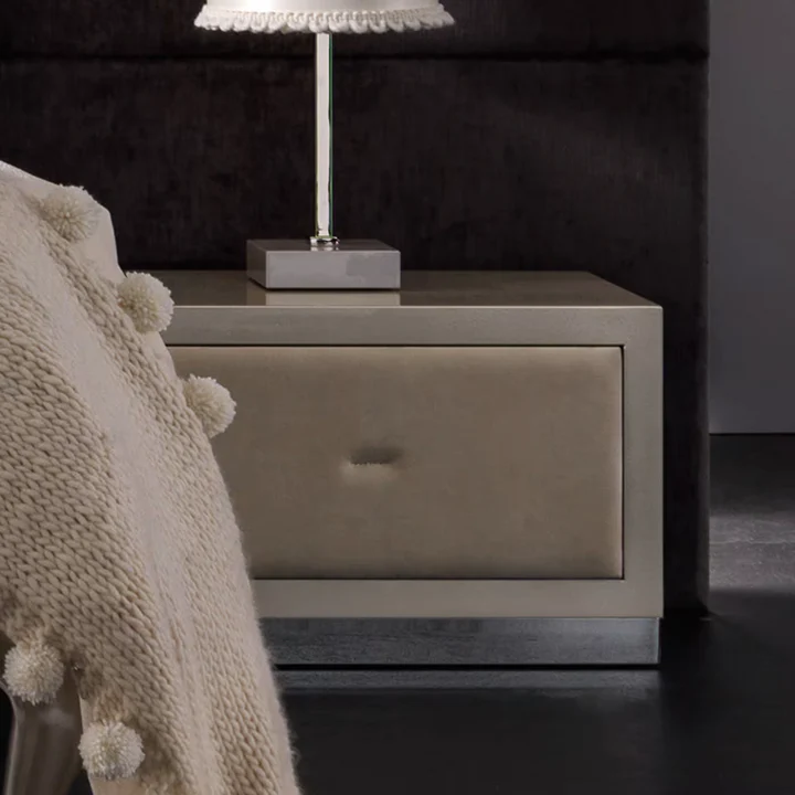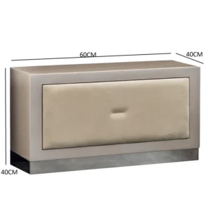 This nightstand features a soft design that combines simplicity and elegance, reflecting a calm and cozy atmosphere. The light gray and beige color scheme adds tranquility to any space, while the natural wood and velvet fabric ensure a luxurious look and smooth texture. With ideal dimensions (60 cm width, 40 cm depth, 40 cm height), it fits perfectly into various spaces. This nightstand is an excellent choice to add comfort and beauty to any room.