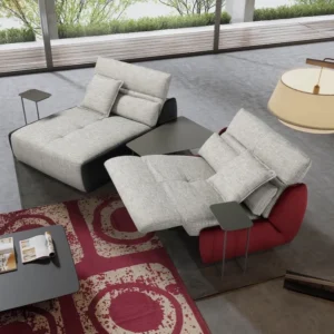A modern and comfortable sofa with an elegant design, featuring a stylish combination of dark gray and black or red and gray for a calm and harmonious feel.