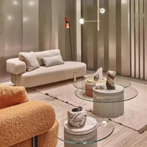 A luxurious modern sofa that blends elegance and comfort, perfect for contemporary spaces. Made with a durable natural wood frame and complemented by matte gold metal , adding a touch of sophistication. The soft gray fabric upholstery creates a calm and stylish atmosphere. Available in various sizes to fit different spaces, making it the perfect choice for upscale modern décor.