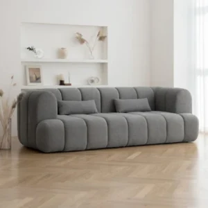 - A luxurious modern sofa that combines elegance and comfort, designed to meet the needs of contemporary spaces.With a height of 75 cm and a depth of 90 cm, it is available in multiple width options (160 cm, 210 cm, and 240 cm) to suit various preferences and needs.Crafted from durable natural wood and upholstered in soft fabric, available in dark gray and light gray colours, it adds a touch of sophistication and modernity to any room.